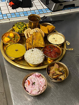 Um die Pilger und Besucher im laufe des Jahres zu beherbergen, bietet das Vrinda Kunja ein bescheidenes, dem Charakter eines heiligen Pilgerortes entsprechendes, Gästehaus. Der Koch und seine Helfer sorgen dafür, das den Gästen alle Facetten der vedisch-vegetarischen Küche angeboten werden können.