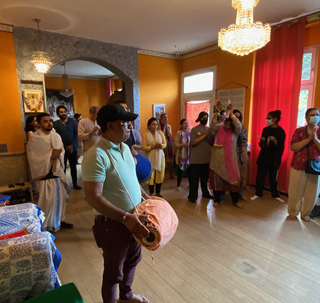 Das Vrinda Kunja wird besonders im Pilgermonat Kartik (Okt.-Nov.) zum Heim vieler Pilger, die von allen Seiten der Welt hier eintreffen, um an den Festlichkeiten und spirituellen Programmen teilzunehmen.