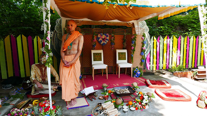 Spendet Bhoga (Nahrungsmittel) für die Prasadam Zubereitung oder gebt eine Spende.